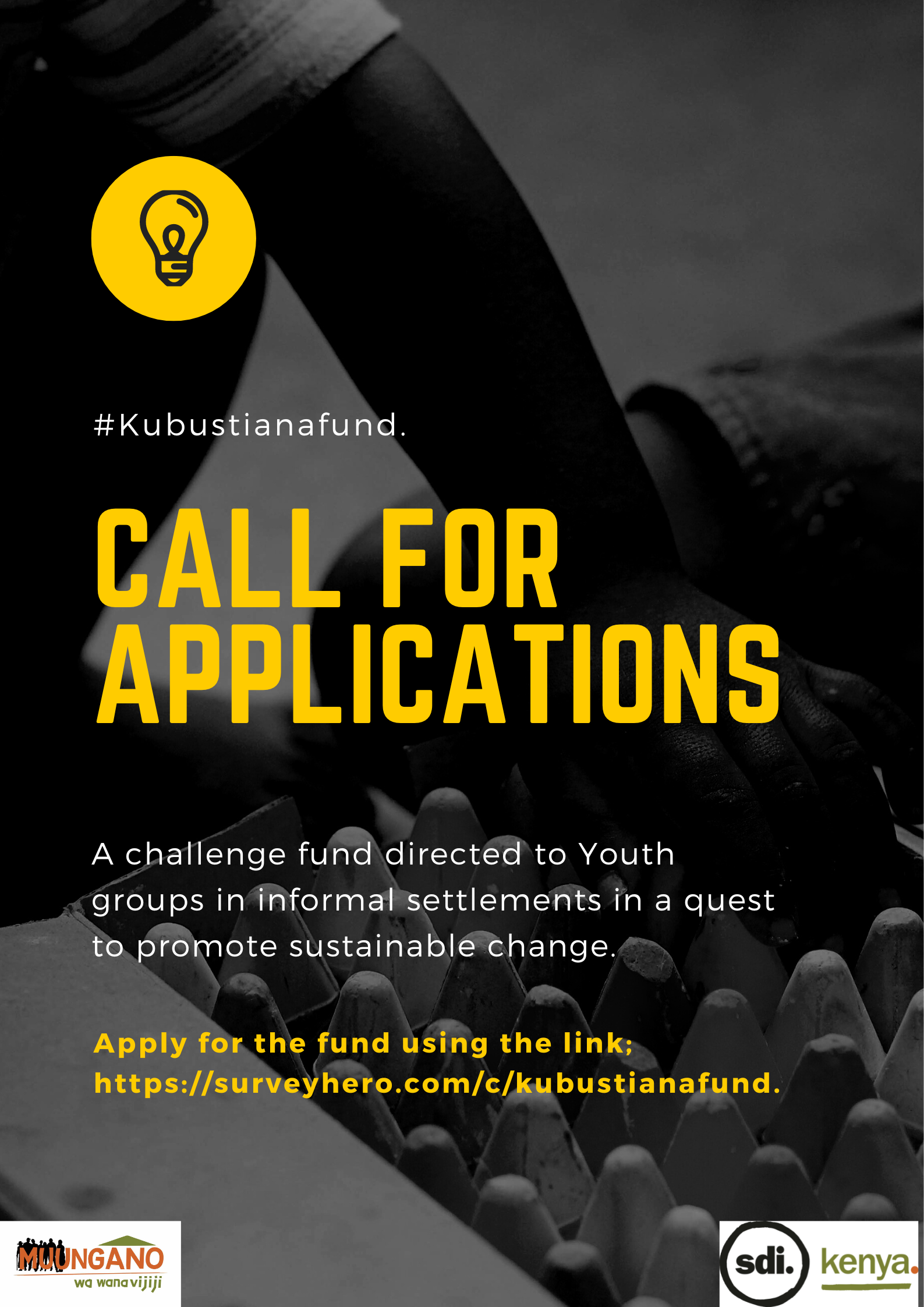 Muungano wa wanavijiji is pleased to announce a call for Challenge Fund directed to Youth groups in informal settlements Mathare, Mukuru, Kibera, and Huruma in Nairobi and Kondele and Nyalenda in Kisumu.